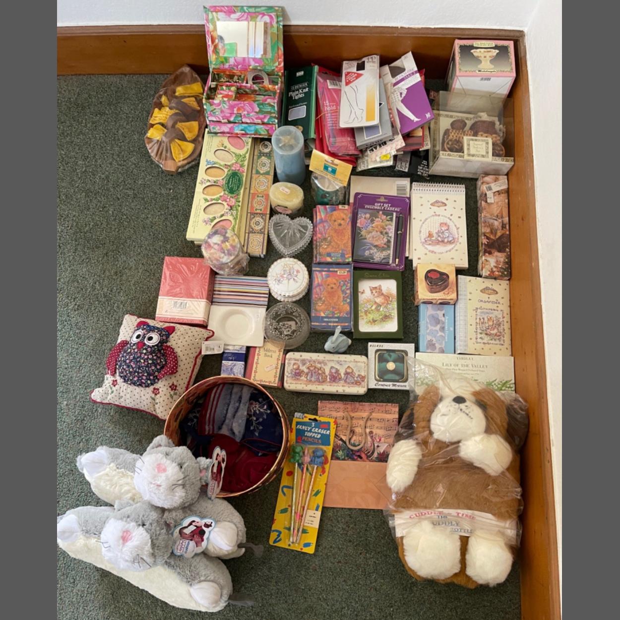 A box FULL of CANDLES, SOAPS, STATIONERY, LADIES TIGHTS, STATIONERY ORGANISERS, CUDDLY HOT WATER BOTTLE and so much more - all new and unused items