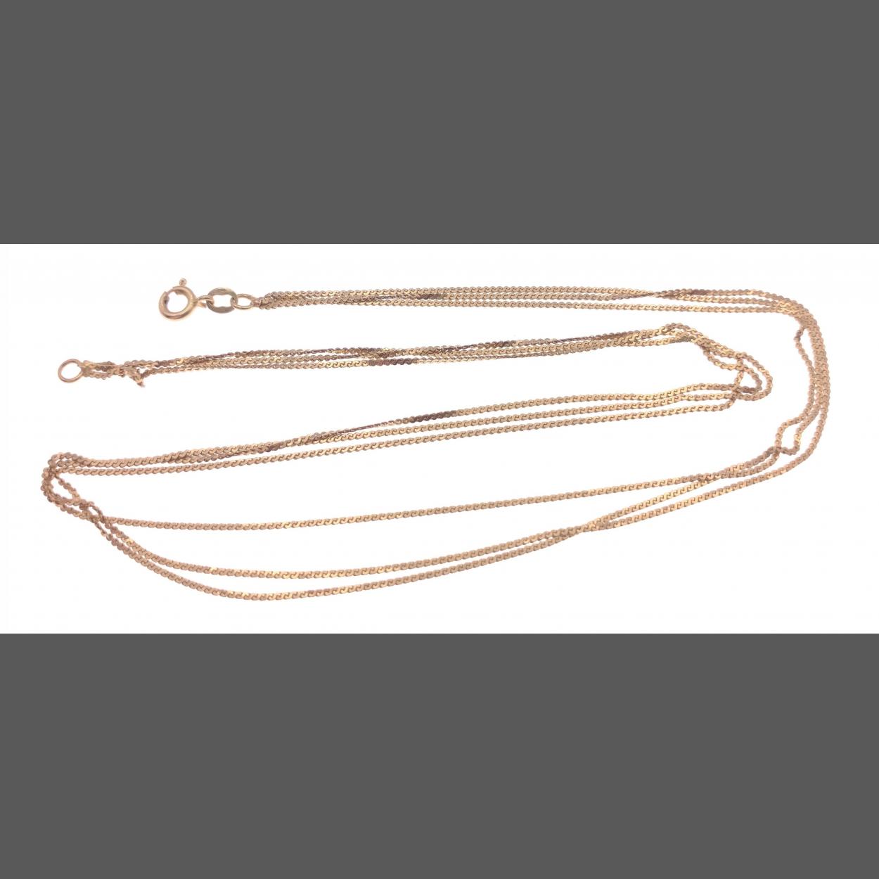 A 750 stamped yellow gold long chain necklace. Total gross weight 6.5g approx.