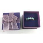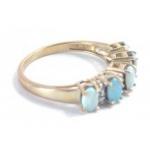 A ring stamped 375 set with 5 opals interspersed with clear stones, size P, gross weight 2.38g approx