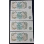 A super run of four sequential FFORDE Bank of England One Pound banknotes. Nice crisp condition.