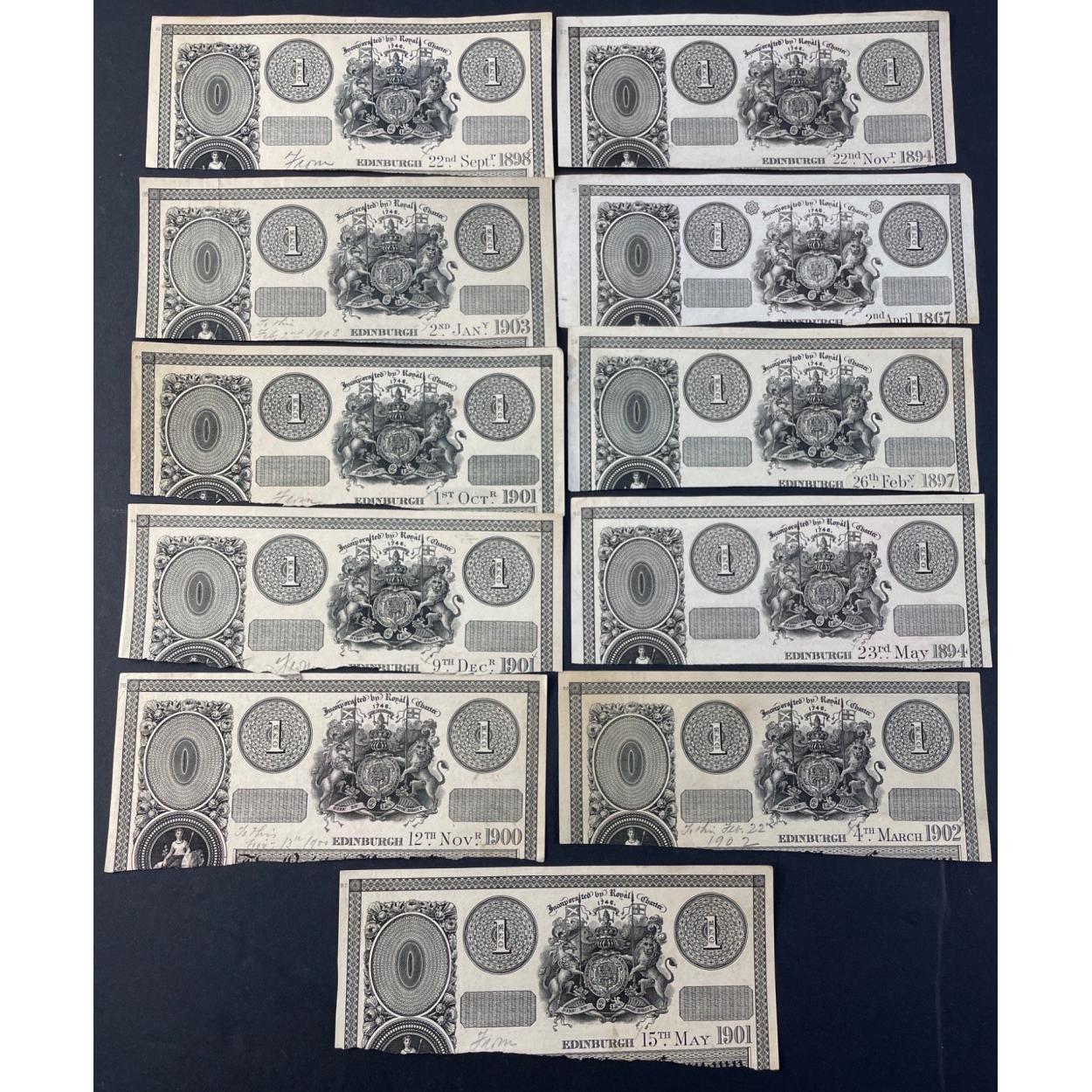 Exceptionally interesting numismatic history!. A lot of eleven BRITISH LINEN BANK cut proofs dating between 1867 and 1903. A super addition to any Scottish banknote collection.