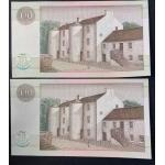 A pair of crisp sequential CLYDESDALE BANK 1988 David Livingstone Ten Pound £10 banknotes in good grade.