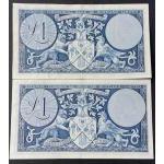 Two NATIONAL COMMERCIAL BANK OF SCOTLAND 1959 One Pound £1 banknotes in good grade.