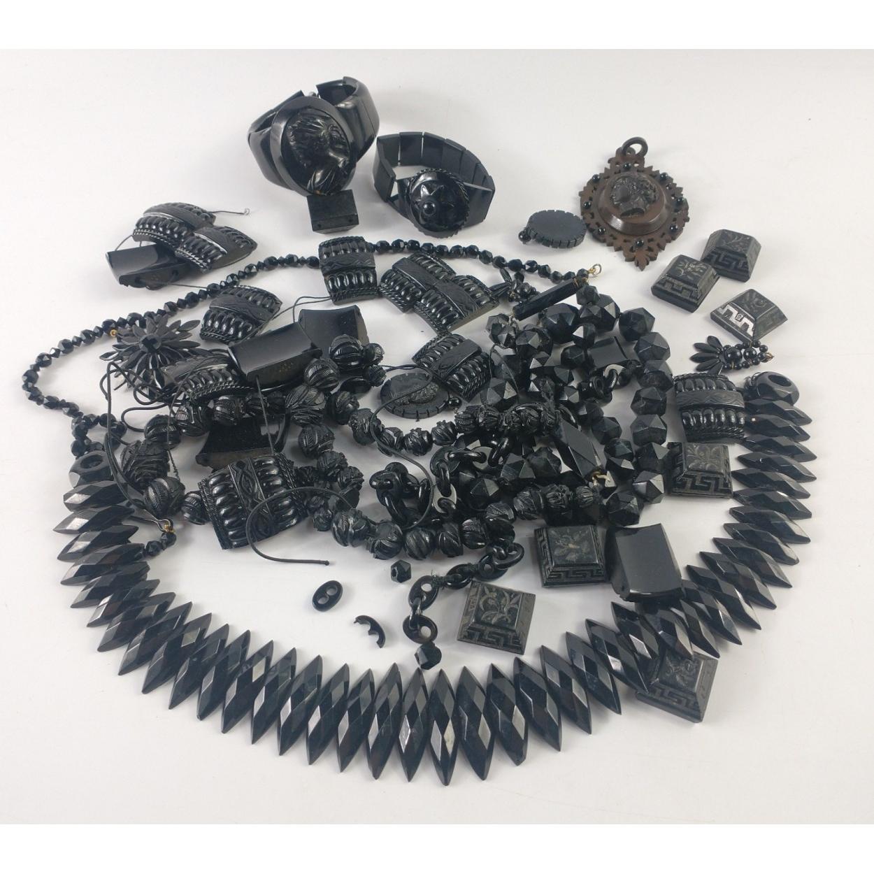 QUALITY! A large collection of black costume jewellery necklaces etc