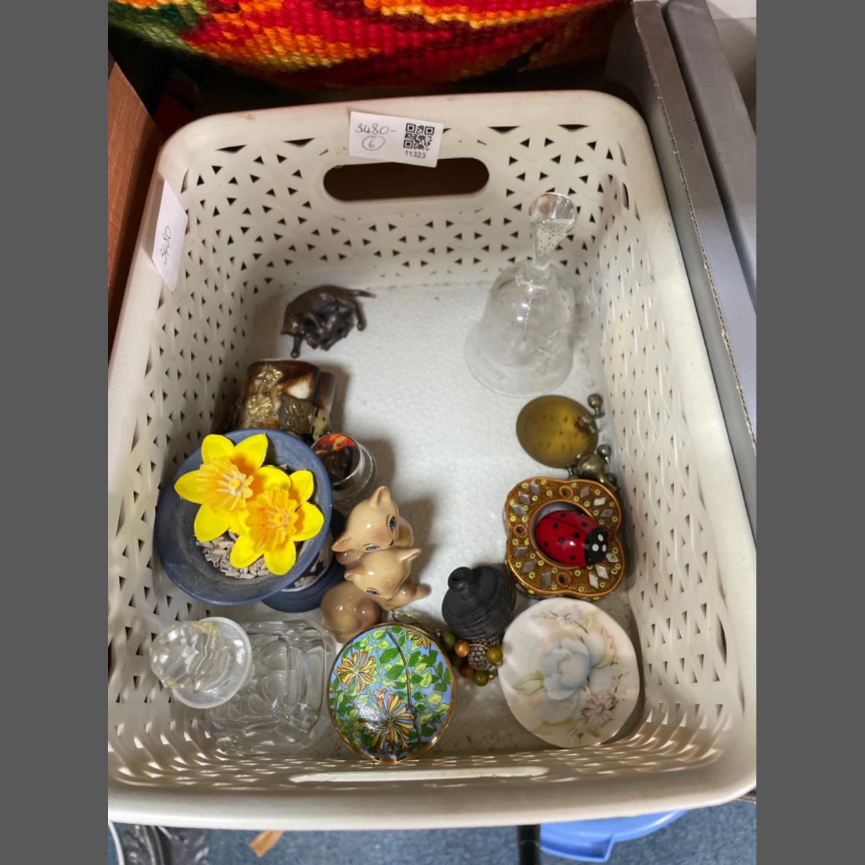 A small collection of knick-knacks to include WEDGWOOD Jasperware, a glass scent bottle, a very miniature coffee set on a tray etc
