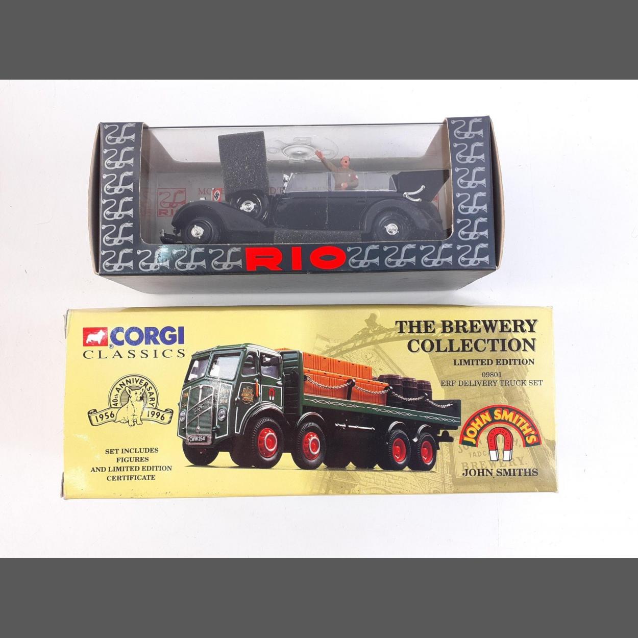 RIO 1:43 Diecast model. 1942 Mercedes Benz Hitlers Personal Car in excellent condition. Lot also includes a CORGI Brewery Collection John Smiths 09801 ERF Delivery Truck Set