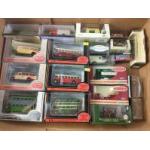 A box of diecast models to complement model railway layouts. EFE, CORGI, OXFORD, TRACKSIDE, CLASSIX and others. A very useful quantity in good condition.