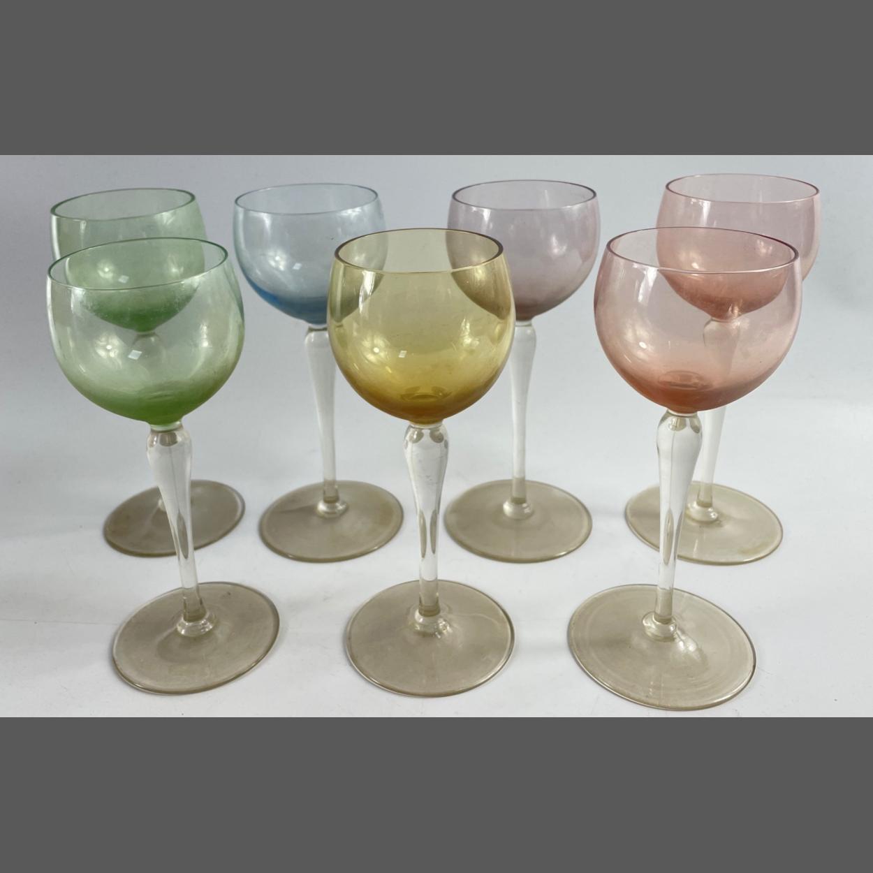 Seven HOCK wine glasses in green, yellow, blue and red
