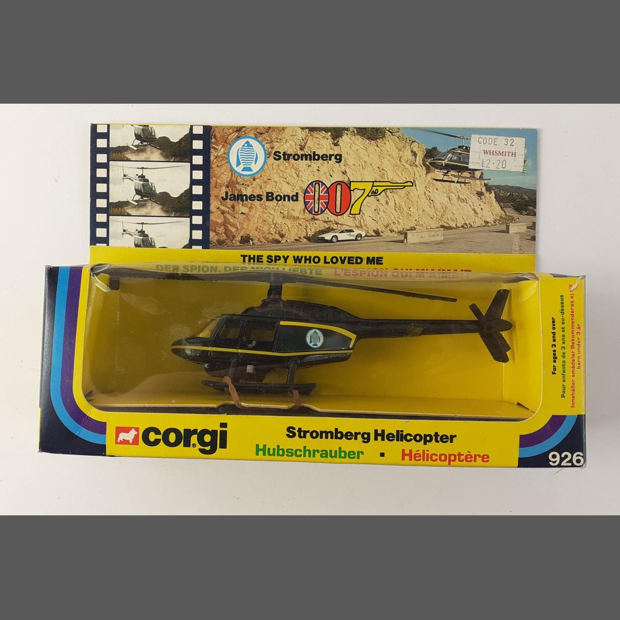 CORGI James Bond 926STROMBERG HELICOPTER in box. Light wear and old price sticker on box but the model appears to be in excellent condition