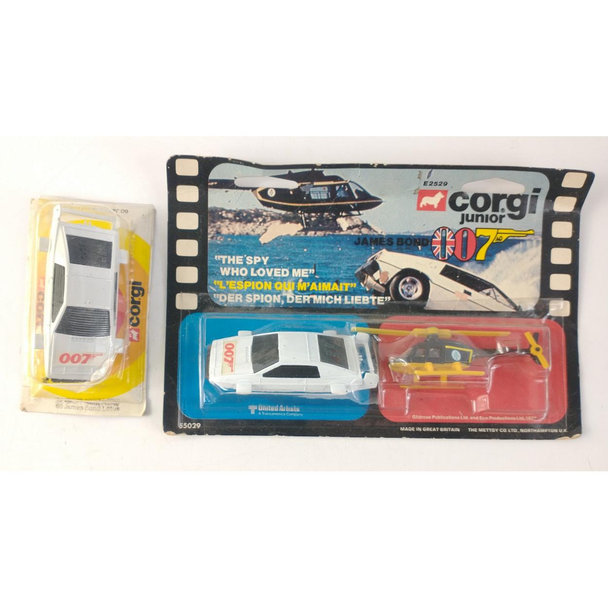 JAMES BOND 007 CORGI JUNIOR E2529 on card with an additional 60 James Bond Lotus. Both in reasonable order with wear to cards
