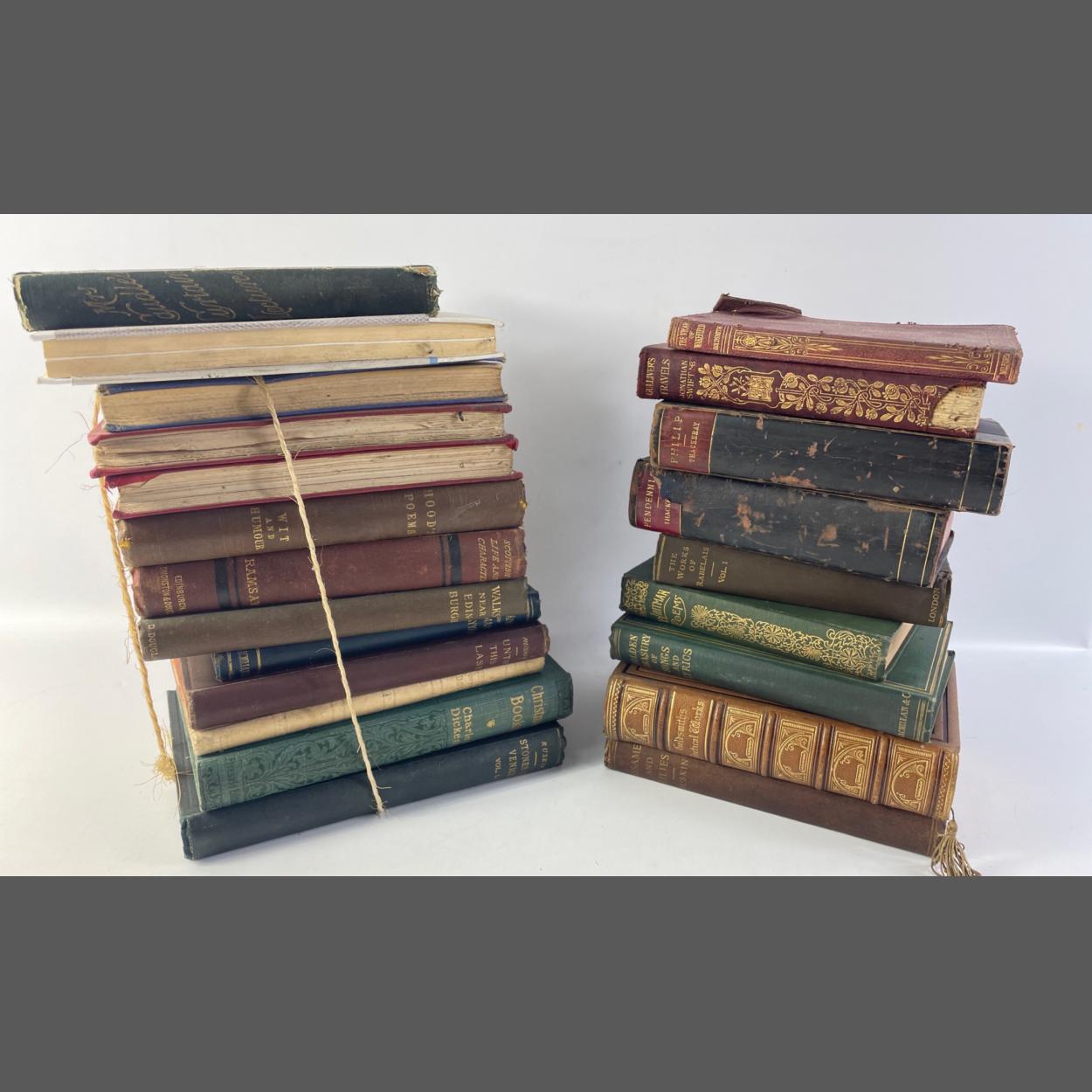 A collection of antique and vintage books including some lesser known titles by the likes of THACKERAY, RABELAIS, WHITMAN etc. All hardbacks although some have suffered through poor storage.