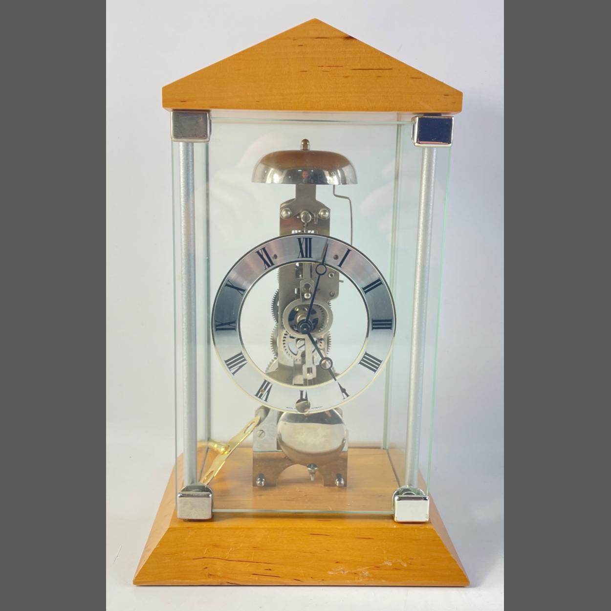 HERMLE BARKINGSIDE beech mantle clock, mechanical skeleton movement,