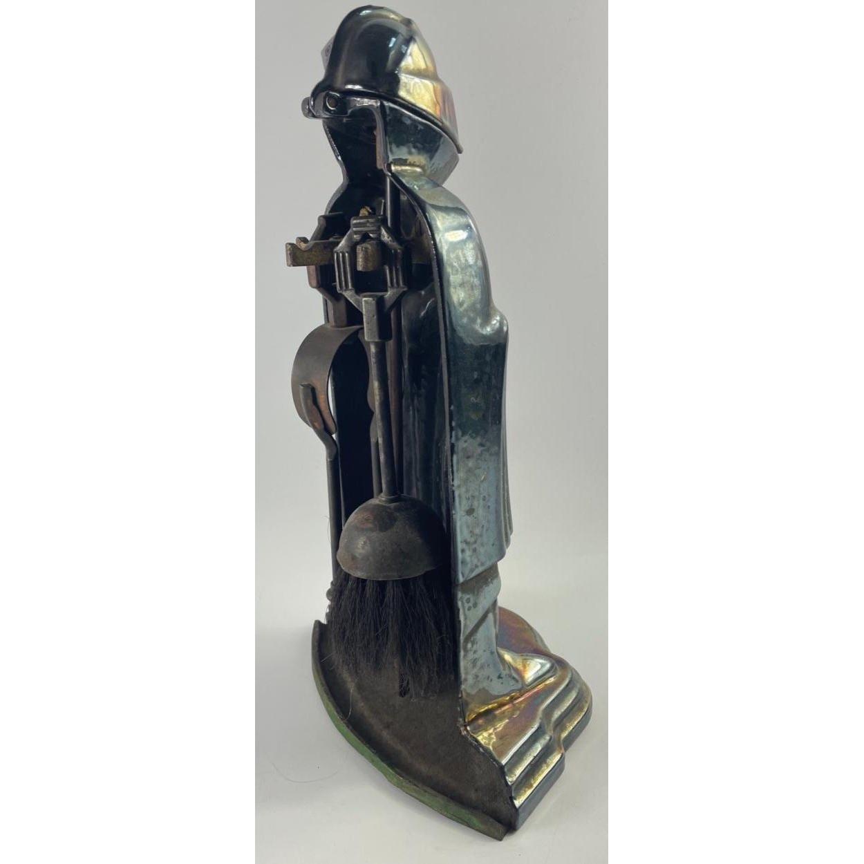 A medieval knight five piece fireside companion set with lustre finish, stands 38cm tall approx