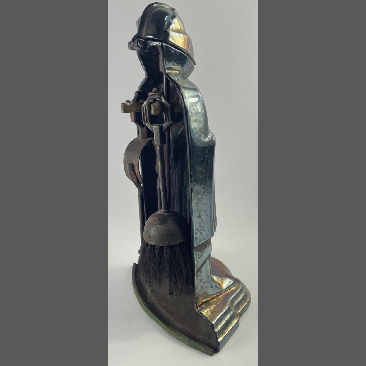 A medieval knight five piece fireside companion set with lustre finish, stands 38cm tall approx