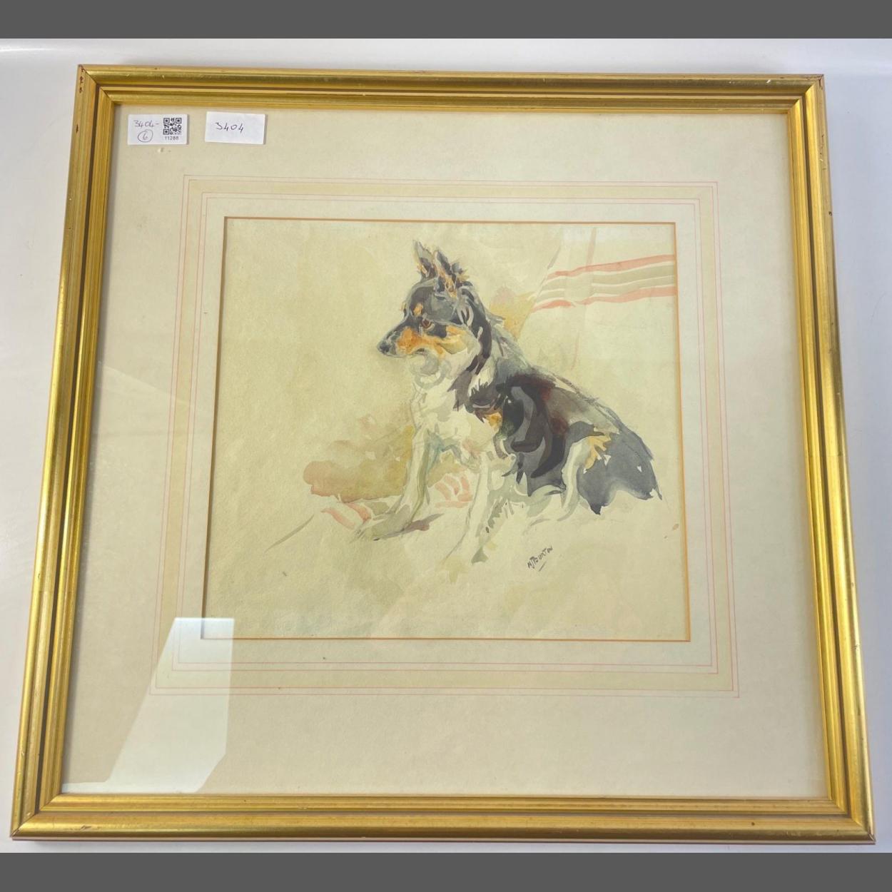 A framed watercolour of a young dog signed in pencil by NANCY JANE BURTON RSW 1891 - 1972, frame measures 49x47cm, visible work 29x27cm