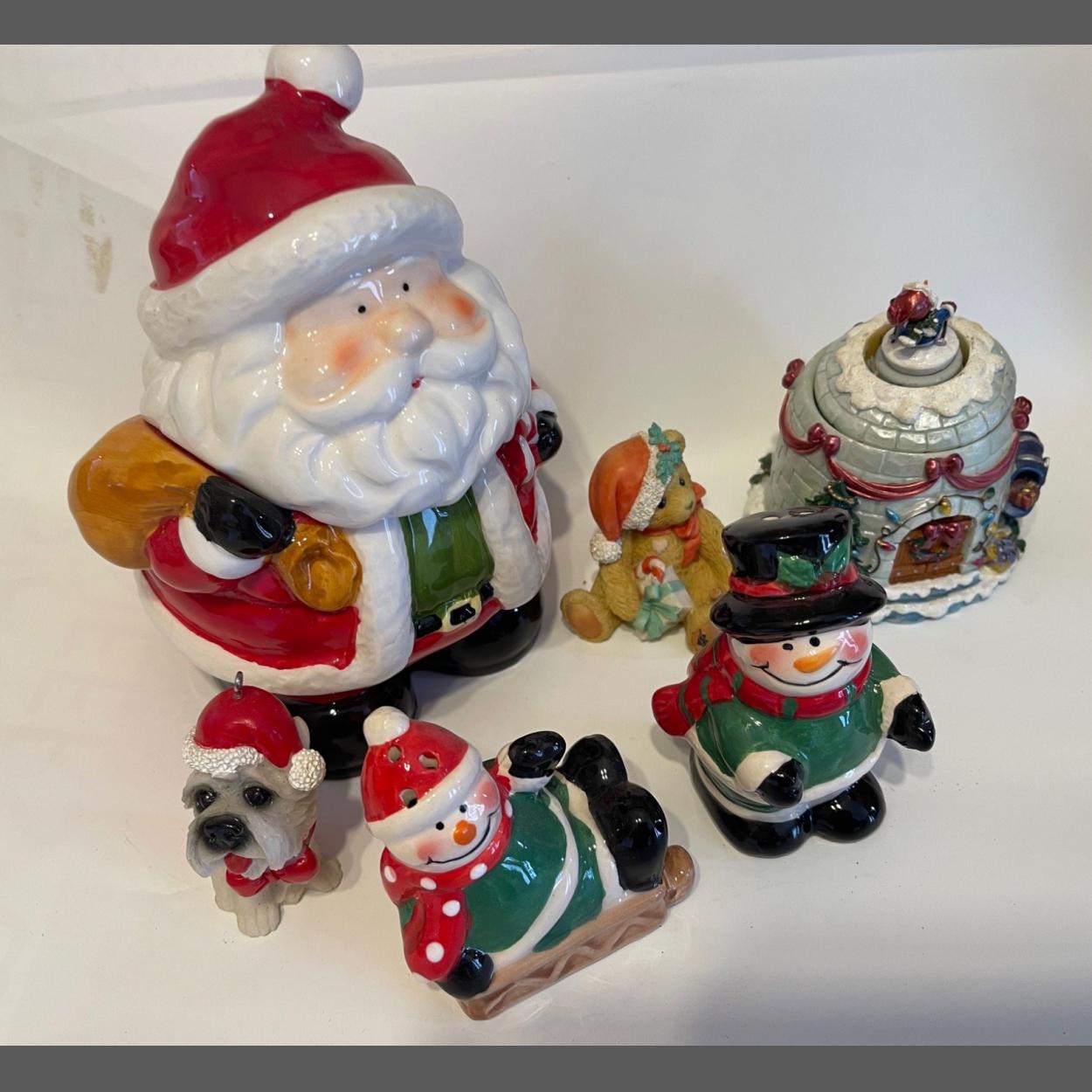 A WEE XMAS ENSEMBLE of festive ornaments - tallest santa ornament 11cm tall approx