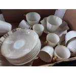 ROYAL CROWN DERBY 'Derby Posies' tea set to include 8 cups, 8 saucers, 9 side plates 1 cream jug and 1 sugar bowl plus a part MINTON coffee set including 6 cups, 6 saucers, also 4 white ROYAL CROWN DERBY teacups with gilt handles,