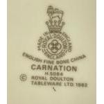 Royal Doulton dinner service in Carnation design to include 6 cups, 6 saucers, 6 side plates, 6 bowls, 5 dinner plates, 1 cake plate and a lidded sugar bowl
