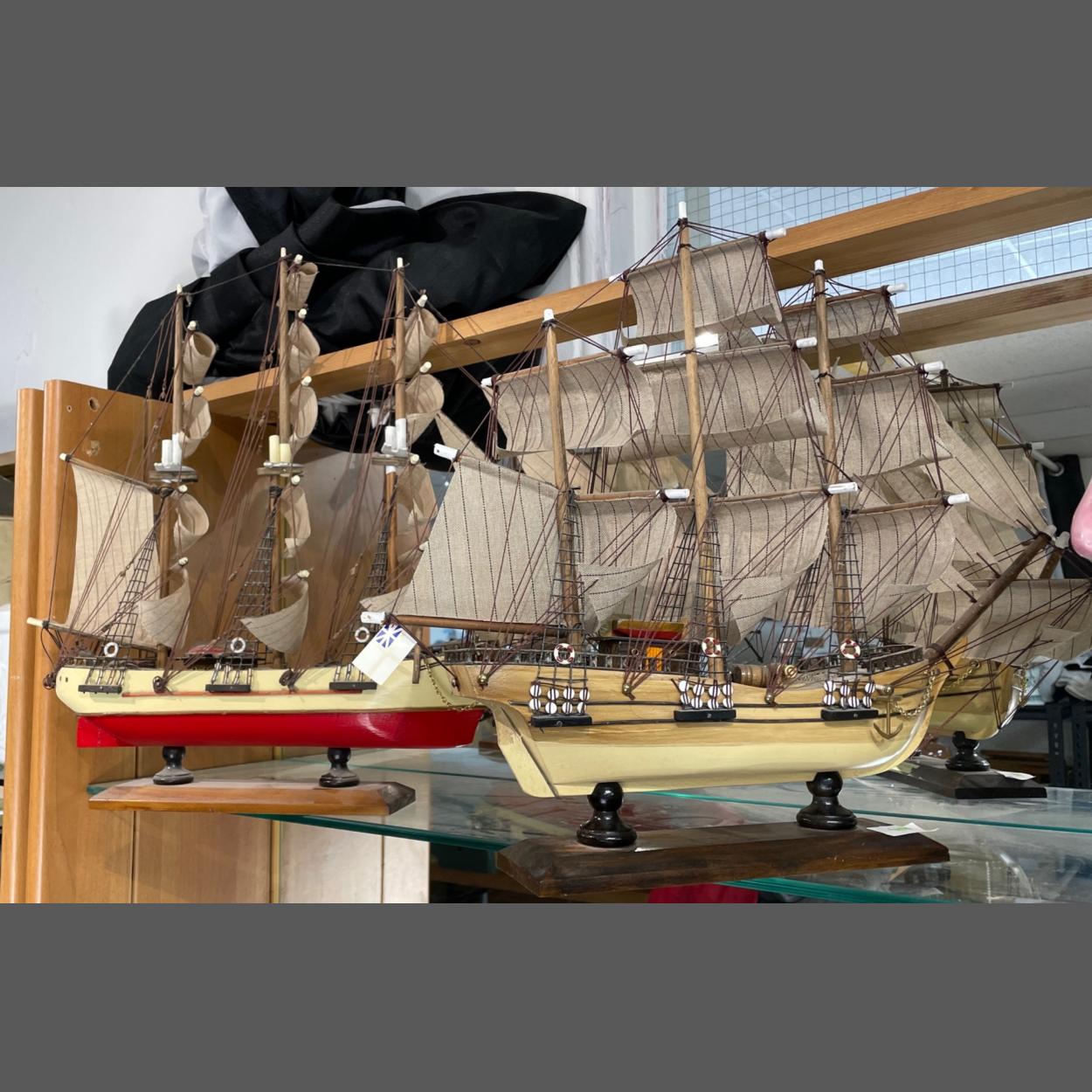 Two sailing ships in 'FULL SAIL' models - dimensions of the largest sailing ship are 56cm length x 50cm tall approx