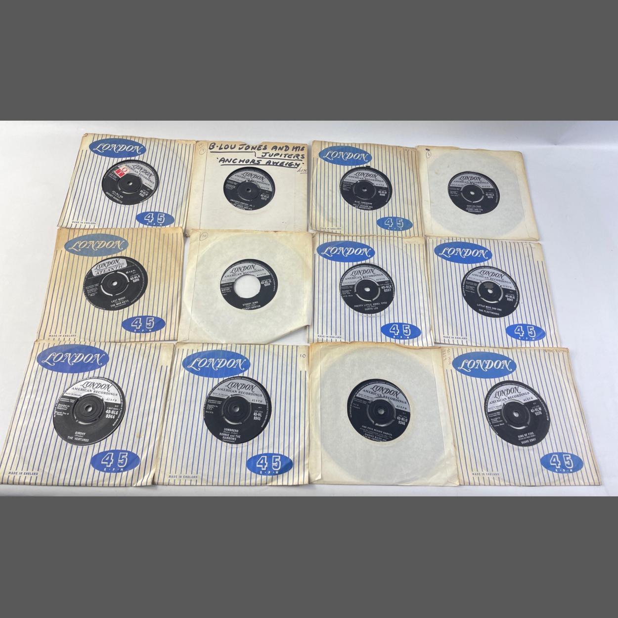 An interesting selection of 25 LONDON AMERICAN RECORDINGS including L.A.R. ATLANTIC 45rpm vinyl records from the 1960s to include Ronnie and The Rainbows, Dorsey Burnette, Julie London among many others.