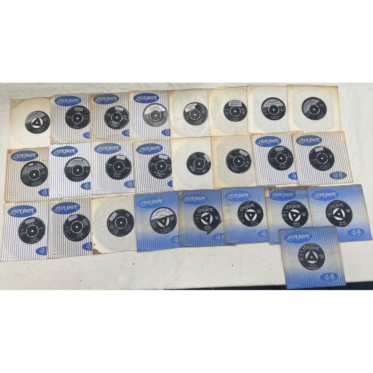 An interesting eclectic selection of 25 LONDON / LONDON AMERICAN RECORDINGS including L.A.R. MONUMENT and L.A.R. DOT 45rpm vinyl records from the 1960s to include The Ronettes, Guy Mitchell, The Kingsmen and Linda Laurie among many others.