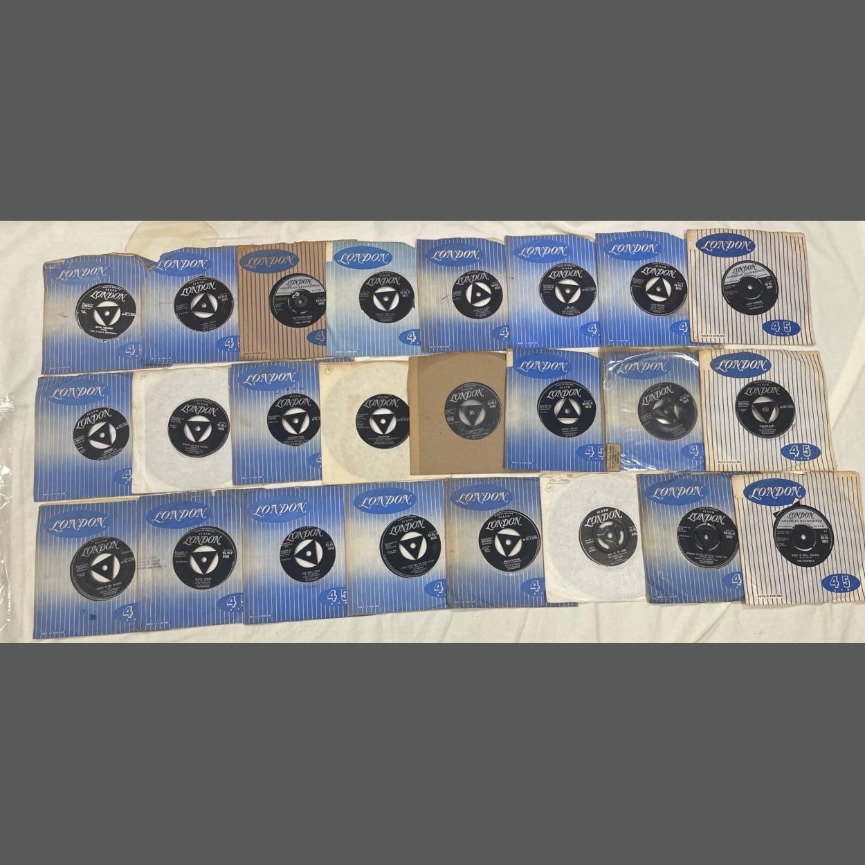 An interesting eclectic selection of 25 LONDON / LONDON AMERICAN RECORDINGS 45rpm vinyl records from the 1960s to include a rare The Wailers (45-HL8995) single, The Eternals, Paul Gayten, Micki Marlo with Paul Anka, among many others.