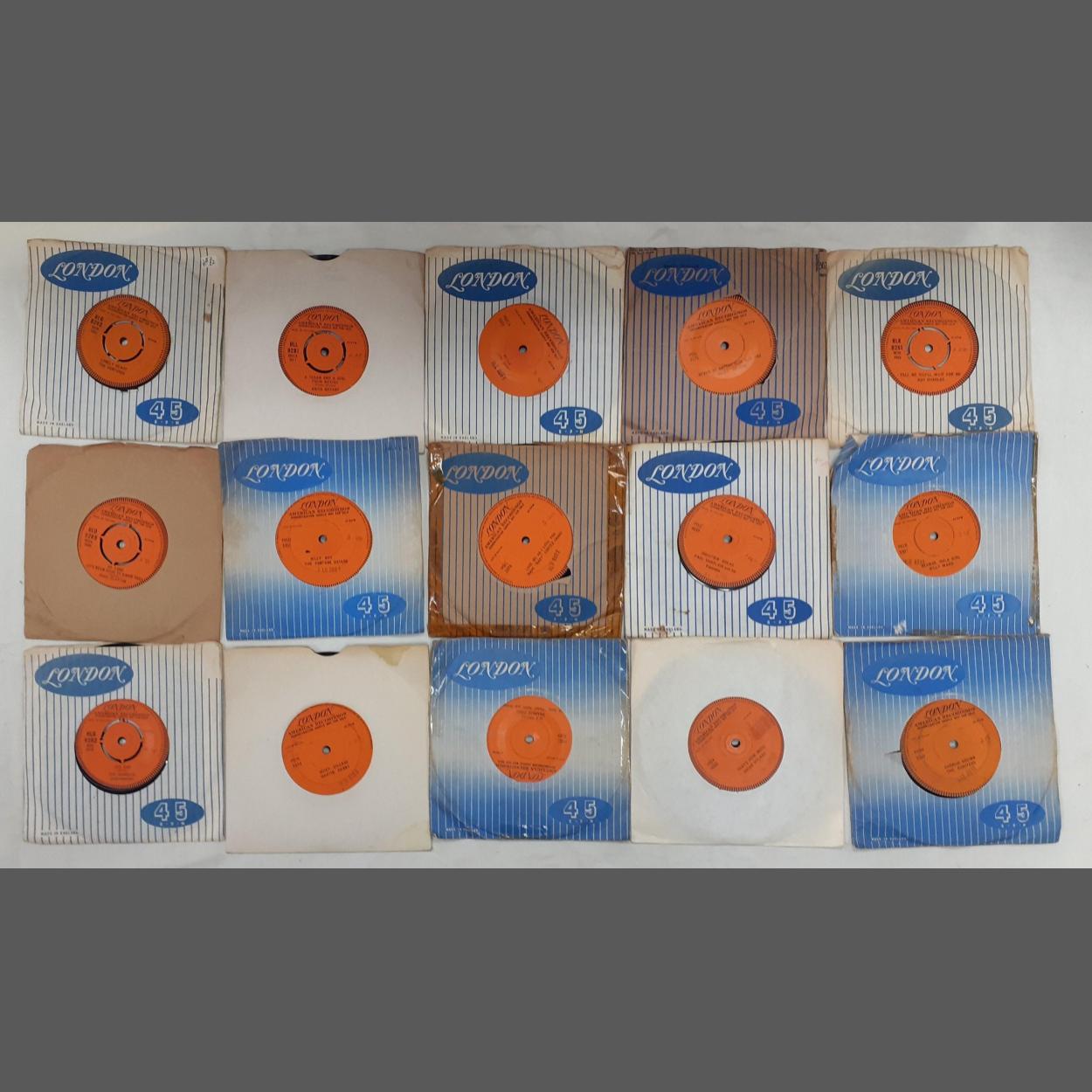 The Ventures, Jack Scott, Brian Hyland and many others - an interestingly valuable selection of 15 LONDON AMERICAN RECORDINGS ORANGE LABEL - Demonstration Sample Not For Sale - 45rpm vinyl records from the 1960s PARTNERED with their respective release disc.