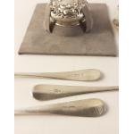 Three silver hallmarked spoons including one made by Francis Howden with Edinburgh hallmark for 1805 plus 2 with indistinct hallmarks, weight 40g approx plus a silver jar lid with indistinct hallmark 5cm dia approx, weight 8g approx, plus 4 silver plated spoons