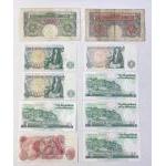 A small collection of banknotes of interest. Includes £1 green BEALE (holed) £1 Blue Peppiatt (worn) as well as six crisp one pound notes.