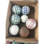 From a traditional Scottish home where in days of yore a set of indoor bowls was kept by the front door, this set of 9 bowls in a used condition, believed to be early WEMYSS, comes within its own wooden box