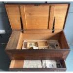 ANTIQUE - A sturdy joiner's tool or storage box with internal drawers and UNUSUALLY a large full sized bottom drawer, with two sturdy carry handles - 3 ft width x 2ft height x 2ft depth approx
