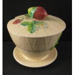 BESWICK 1575 lidded Jam / Preserve pot with strawberry finial and fixed drip plate. In good condition without spoon.