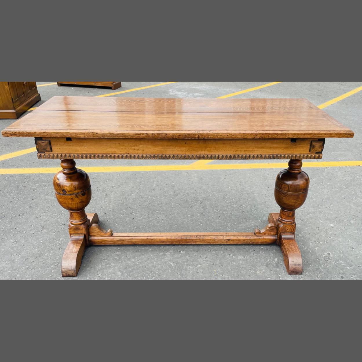 early 20th century oak dining table sitting on robust bulbous stretchered legs - 6ft length x 2ft approx