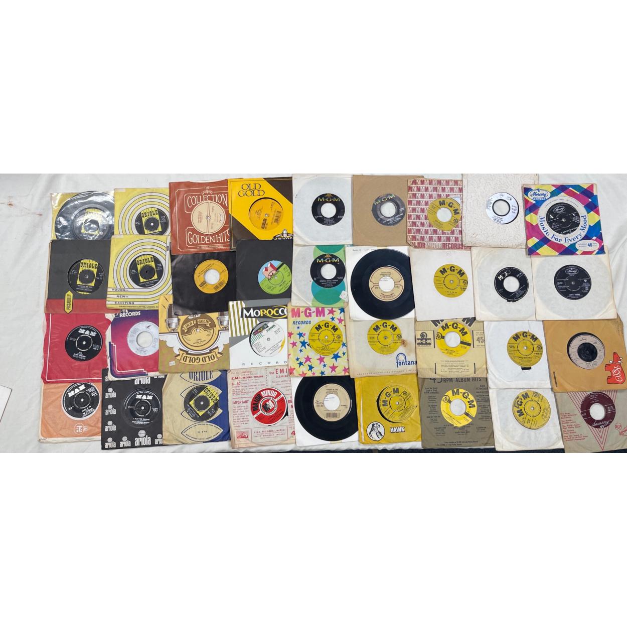 Lot of over 100 45rpm vinyl records from various recording studios including HAPPY TIGER, HARP, HARVEST, H.M.V., HOWARD (WARNER BROS LTD.), IMMEDIATE, IMPERIAL, INTERNATIONAL TALENT INC., ISLAND, JAY BOY, JET, JIN RECORDS, JIVE, KAPP, KALEIDOSCOPE RECORDS LTD., KUDU, LIBERTY, LIFESONG, MAM (DECCA), MAGNET, MAKING WAVES, MCA, MERCURY, METRONOME, MOJO, MGM, MM (MAJOR MINOR), MOROCCO, MOUNTAIN, OLD GOLD, and ORIOLE and recording artists from the 1960s, 70s and 80s including Sonny Webb & The Cascades, Bill Haley & The Comets, Toto, Sensational Alex Harvey Band, The Coyote Sisters, Jimmy Jones, Roni Griffith, Dean Friedman and Esther Philips among many others.