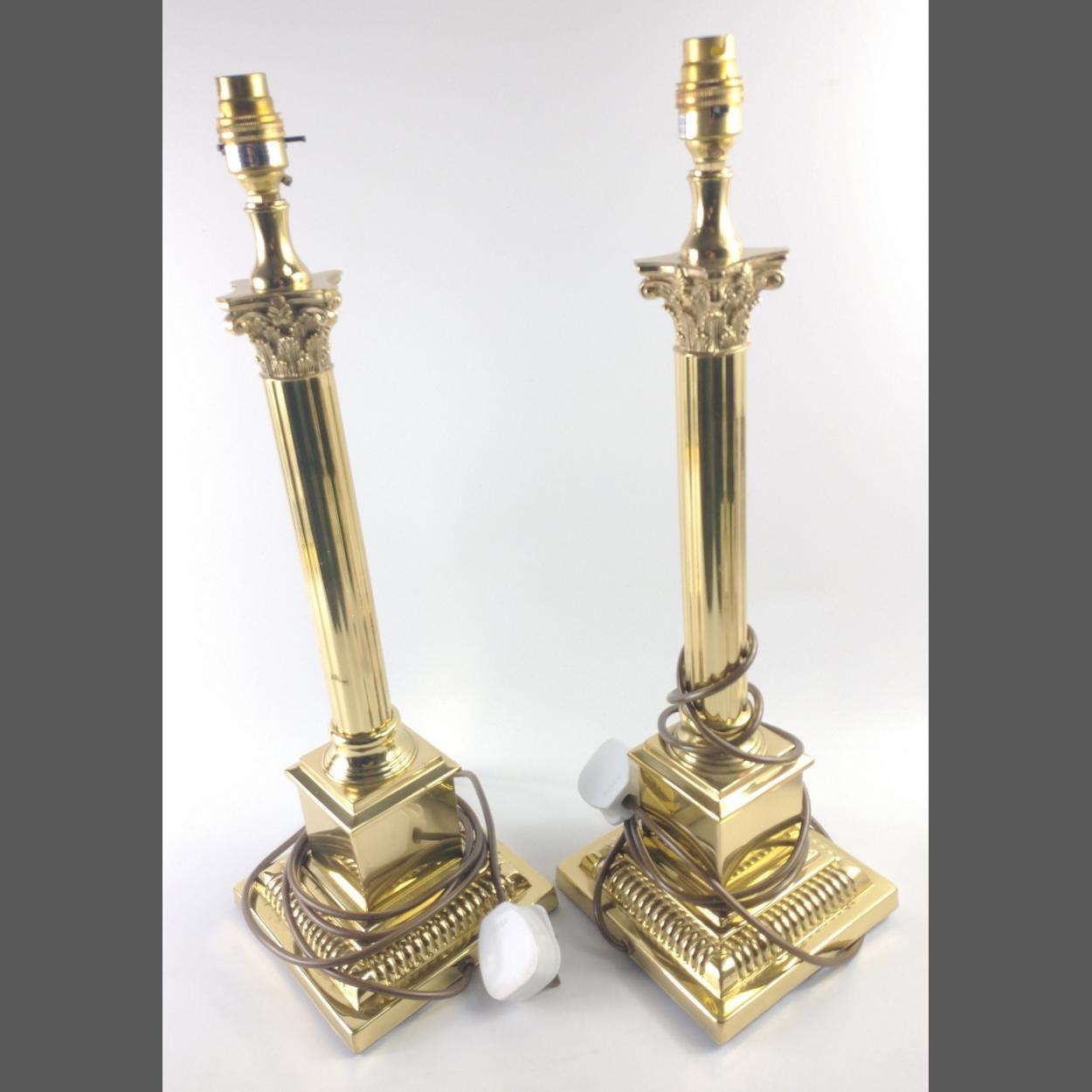 Two column brass table lamps in excellent condition each standing 54cm high, base 17x17cm