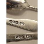 A collection of silver hallmarked cutlery to include 6 coffee spoons (Sheffield 1909) by Cooper Bros, 2 teaspoons (London 1913), a sauce ladle (Edinburgh 1986), total weight 118g approx