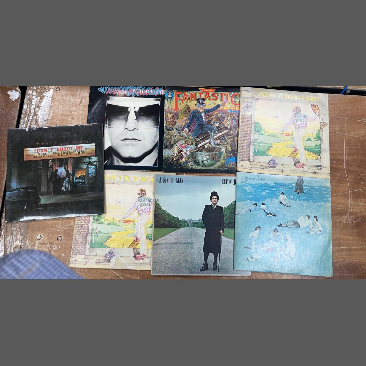 ELTON JOHN collection of seven LPs to include 2 x copies of Goodbye Yellow Brick Road, Don't Shoot Me, Victim of Love, Captain Fantastic, A Single Man, Blue Moves.
