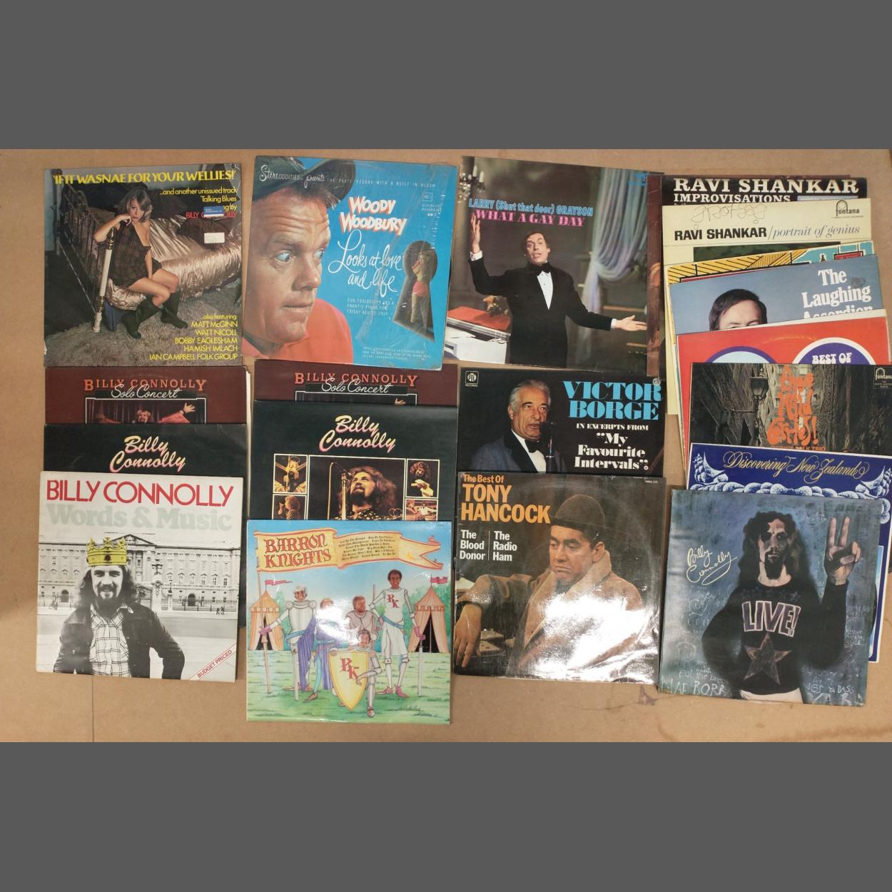 Get ready for a giggle with this Comedy and Folk collection from Billy Connolly, Tony Hancock, Victor Borge, Larry Grayson, Woody Woodbury. Lot also includes several Ravi Shanker albums.