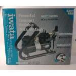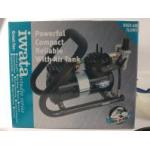 IWATA boxed powerful compact and reliable air compressor with air tank and a box of accessories Revolution attachments etc