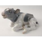 ROYAL COPENHAGEN Denmark 1072 stamped resting cow in grey and white porcelain dimensions 16cm x 10cm approx - OF THE FINEST QUALITY! with also a white ceramic POLAR BEAR witha VIENNESE BEEHIVE STAMP stamped F OPITZ dimensions 11cm height 16cm length approx with lastly a small WEMYSS inspired porcelain little piggy with flora design dimensions 8cm length x 5cm height appro - all three items no chips cracks or signs of damage repair