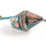 A FLASH large MIDDLE EASTERN pointed white metal ring with local coloured pink and turquoise stones and with also a turquoise necklace