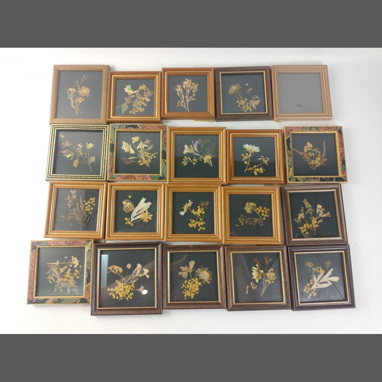 A super little collection of 19 small 10cm frames with dried flowers and one new empty frame. A very decorative collection in good condition.
