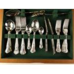 A lovely well-looked-after Slack & Barlow (Sheffield) Cutlery Set in original wooden box. EPNS A1 quality. 62 pieces in total to cover 6 place settings.
