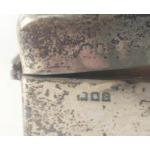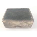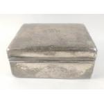 A wooden monogrammed cigarette box encased in indistinct hallmarked silver, measures12x9x5cm, gross weight 238g approx