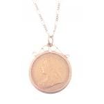 A Victorian 1895 full sovereign on a 375 stamped chain (60cm approx) weight 12.55g approx