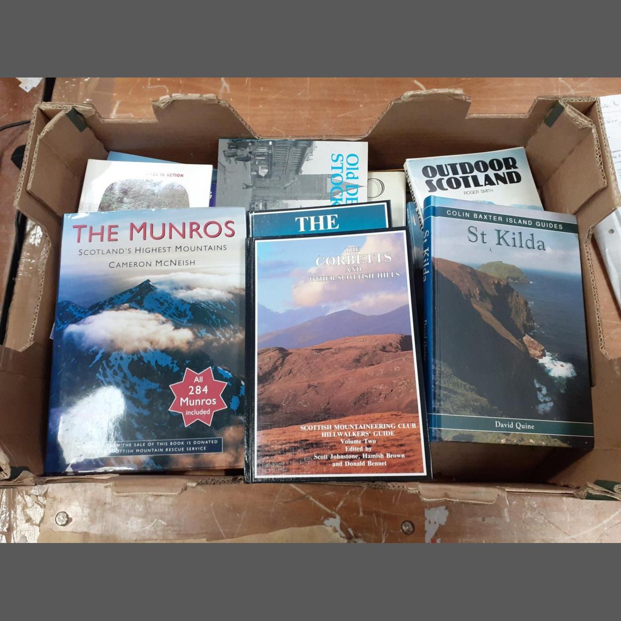 BIKING and CYCLING enthusiasts alert - 25 Walks in The Scottish Borders, the Good Guide to the Lakes, 26 Cycle Routes Edinburgh and Lothian, Outdoor Scotland, Cycling in Scotland & NE England, Scotland's Inland Waterways plus many others, plus 2 framed maps of Jura and St Kilda from ALBA CARTOGRAPHICS (frame size 37 x 28cm) and a framed print of Edinburgh from St Anthony's Chapel and also THE MUNROS by Cameron McNeish, The Corbetts and Other Scottish Hills vol 2 edited by Scott Johnstone and much more