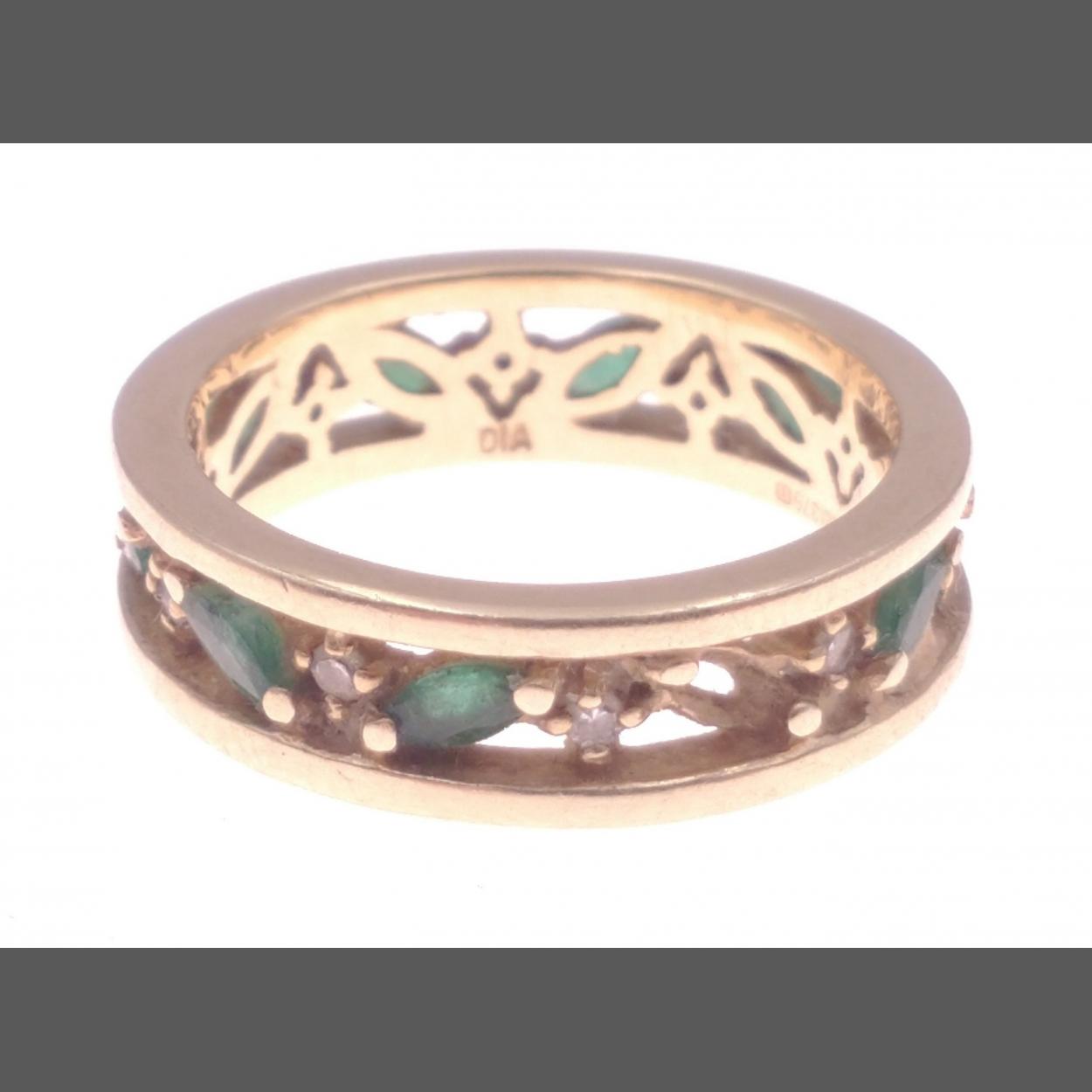 A 9ct stamped emerald and diamond eternity ring , size O gross weight 4.7g approx