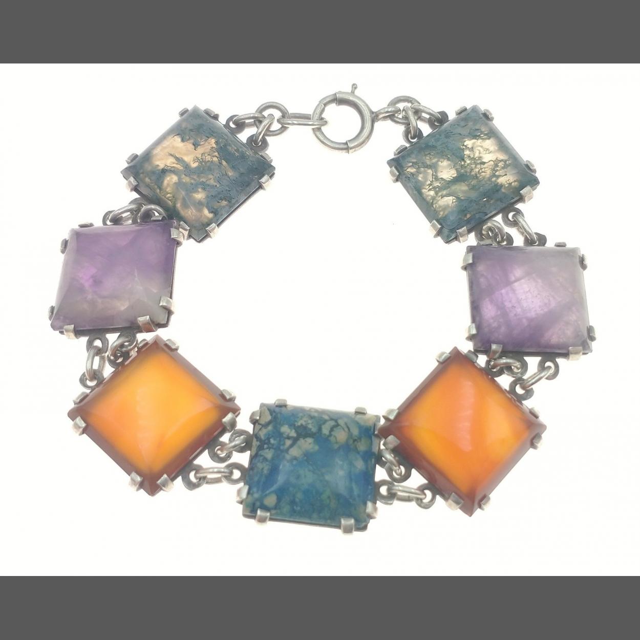 A Scottish agate bracelet stamped Silver, gross weight 27.4g approx