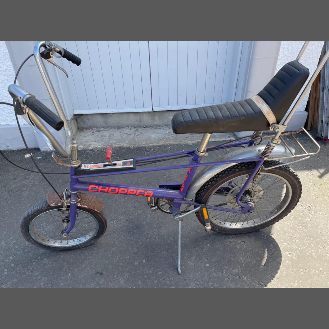 An ORIGINAL RALEIGH CHOPPER - with stand - in an exciting purple livery! - requires some light restoration but looks really cool with original tyres etc! My dream 1970s Dad had a MkII Escort and I had a Mk II Chopper! A solid basis for a great future show bike.