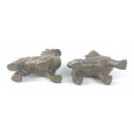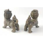 A pair of brass-style oriental Foo dragons approx. L10cm x W5cm x H11cm.